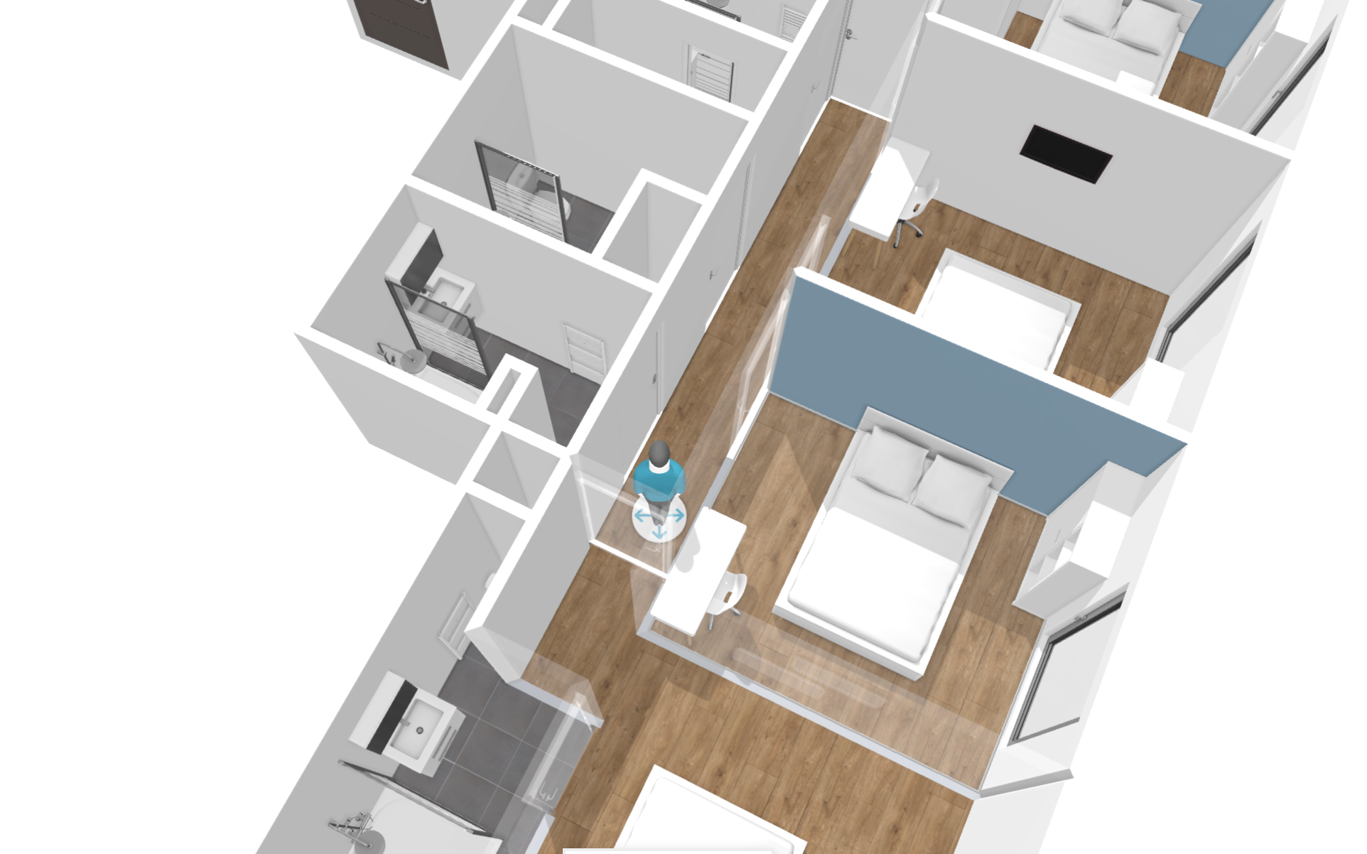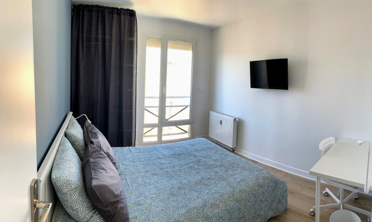 Les chambres sont composées d’un lit double (140cm) avec rangements, d’une armoire avec penderie, d’un bureau et d’une chaise de travail et de volets électriques totalement occultants
