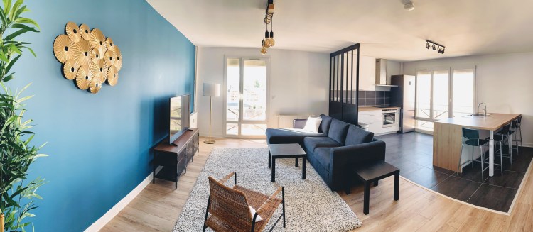 Le salon est équipé d’une télévision connectée de 140cm