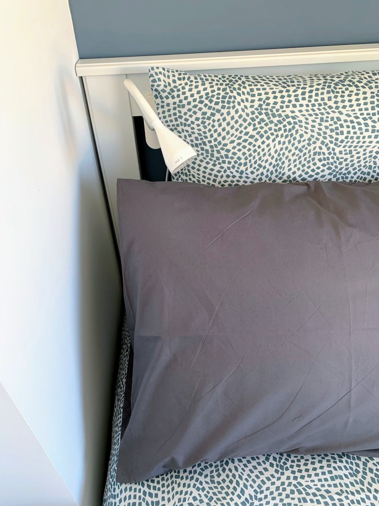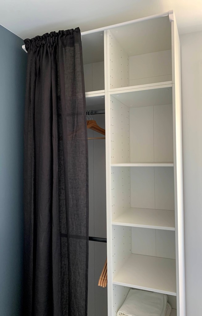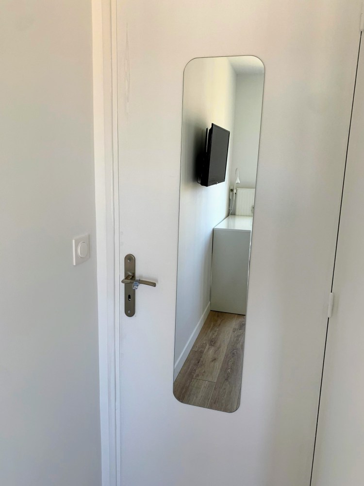 Cette chambre dispose d’un lit double (140cm), d’une armoire avec penderie, d’un espace de travail avec bureau et chaise, d’un salle de douche privée avec WC privés et d’une télévision murale connectée à Internet avec un abonnement Netflix inclus